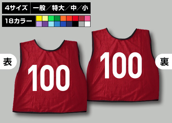 通常ビブスに、3桁までの任意の番号をプリントできます。