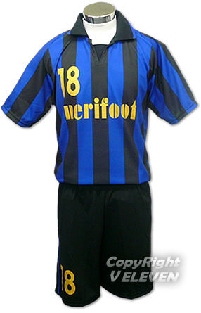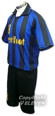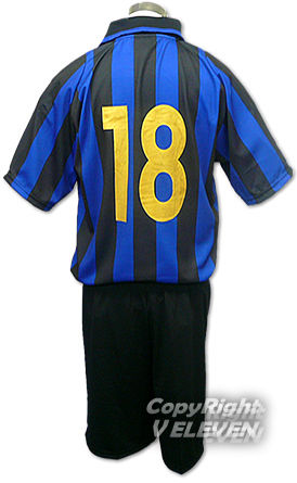 青と黒のストライプによるサッカーユニフォーム。青と黒のストライプで有名なのはイタリアの名門インテル・ミラノ、日本ではガンバ大阪が採用しています。(ガンバ大阪に関しては、当初は青・白・黒の組み合わせでしたので、ストライプという印象はあまりないかもしれません)