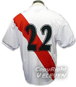 リーベル・プレートは近年、タスキの他に首や肩に黒や赤のラインを入れるモデルが多く、パンツは黒となるのですが、ペルー代表はシャツのデザインもシンプルになっており、パンツは白になります。