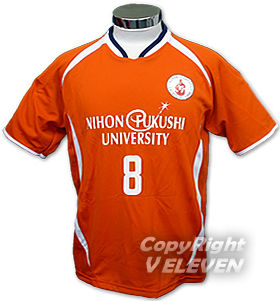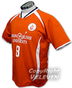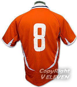 オレンジをベースに、白のラインが入るサッカーユニフォーム。