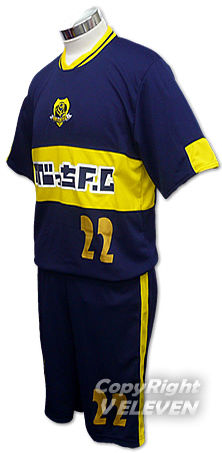 ボカ・ジュニアーズ風の紺色+山吹色 フルオーダーユニフォームTYPE-B No.0921 デザイン例