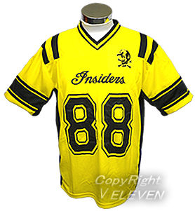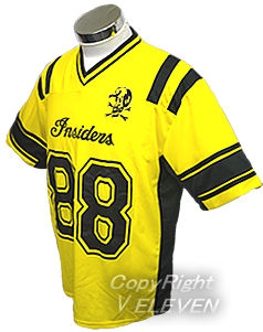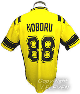 黄色と黒といえばドイツのボルシア・ドルトムントが有名ですが、このデザインはVネックや胸・背中の番号、肩・袖のラインの使い方からすると、アメリカンフットボールっぽいイメージのデザインになっています。
