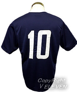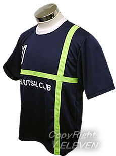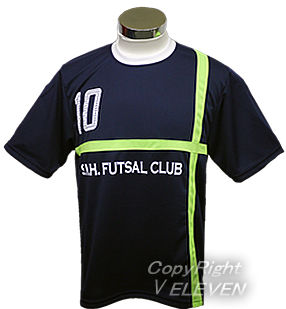 紺をベースに蛍光黄色が入るサッカーユニフォーム。