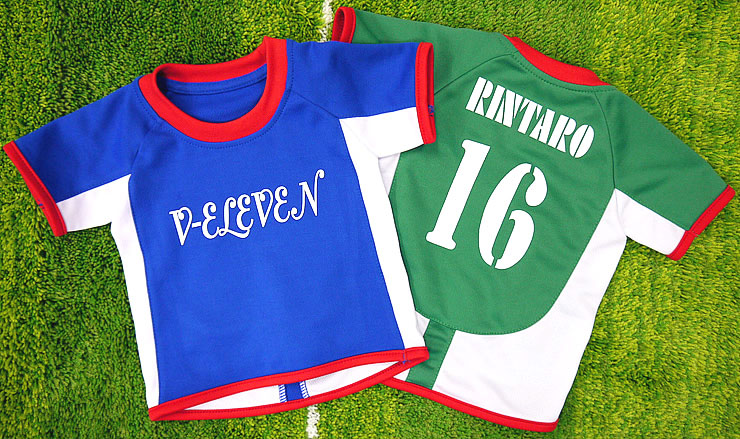 ※あくまでミニチュアサッカーユニフォームです。首の据わっていない赤ちゃんへの無理なご着用はお控えください。