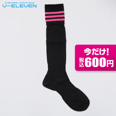 黒/ピンク3本ラインソックス